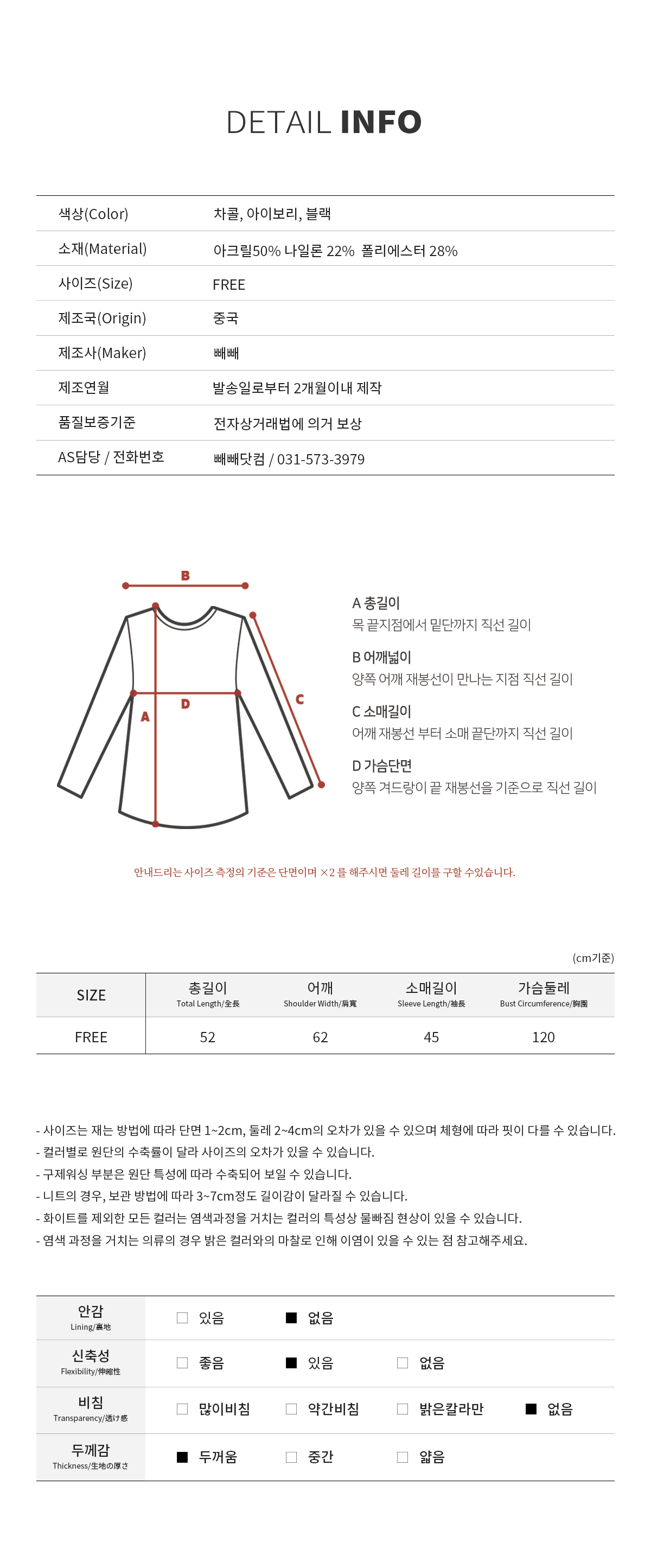 Item size chart »çÀÌÁî ±âÁØÇ¥