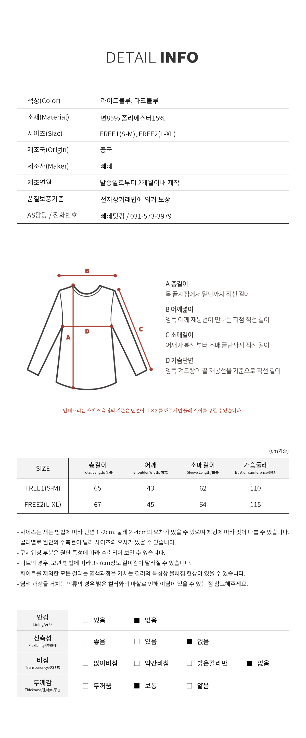 Item size chart »çÀÌÁî ±âÁØÇ¥